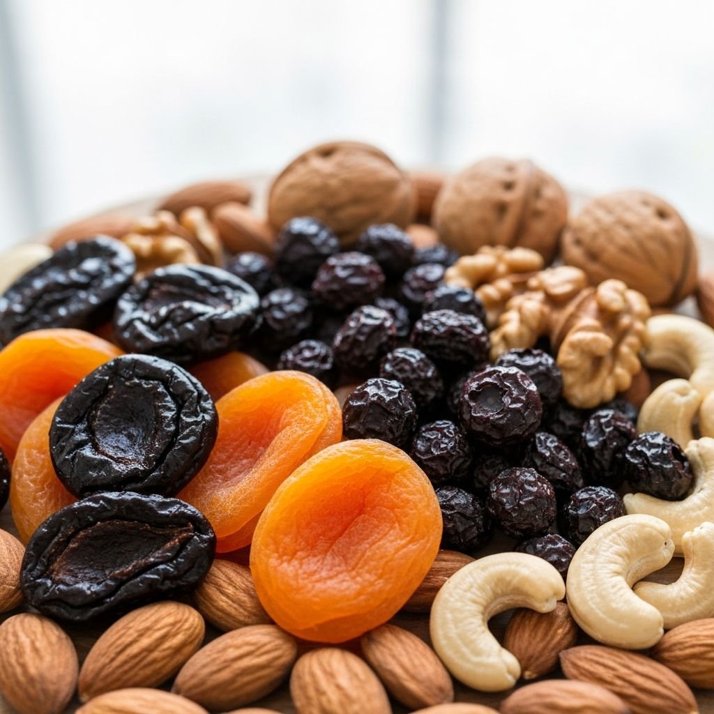 Nutritious dried fruits and nuts with extended shelf life, perfect for healthy snacking and food processing industries.